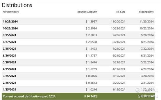 最近的一次股息为2.3084美元,按年化计算,相当于18%的股息/分配金额(2.3084美元/158美元)*12。这个股息收益率是2024年最强的,在11月股息可能会下降,但仍然保持在10%以上。