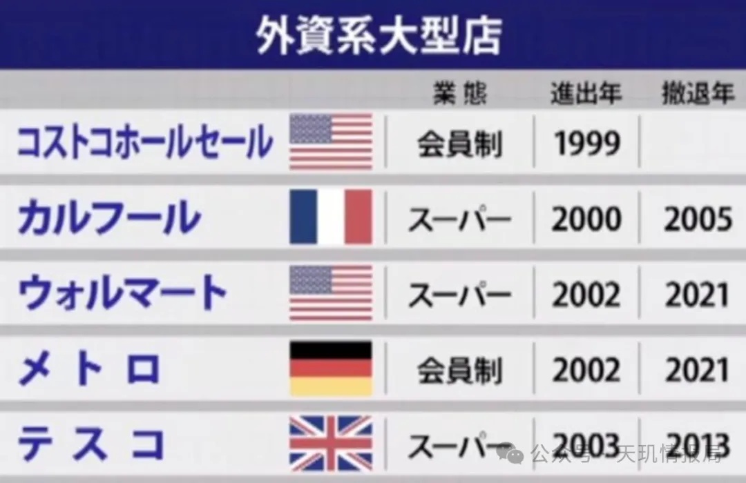 首先,我们可以看到,外资零售巨头进入日本市场的时间点几乎是相同的,都是2000年左右。