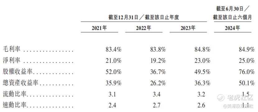 公司毛利率保持在较高水平且稳中有升,2021 - 2023 年毛利率分别为 83.4%、83.8% 和 84.8%,截至 2024 年 6 月 30 日的前六个月毛利率为 84.9%。净利率也呈现良好发展态势,2021 - 2023 年净利率分别为 21.0%、19.2% 和 23.0%,截至 2024 年 6 月 30 日的前六个月净利率为 25.0%。这得益于公司产品的高端定位、品牌影响力以及有效的成本管理策略,使公司在市场竞争中保持较强的盈利能力。