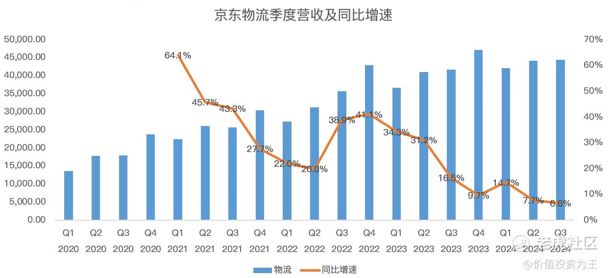 京东物流三季度营收为444亿,同比增长6.6%,略低于分析师预期的449亿: