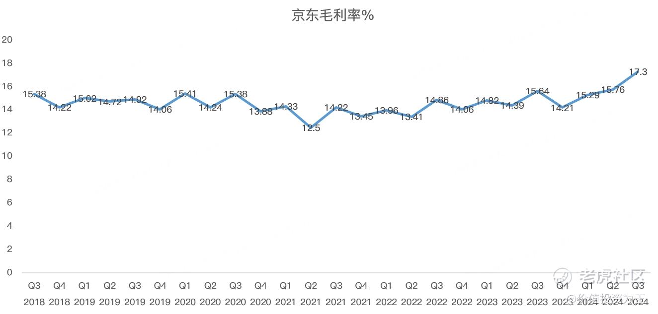 另外,从利润角度看,虽然三季度净利润同比增长48%,但主要来自毛利率的提升,如今年三季度,京东营收增长5.1%,但营业成本却只增加了3.1%。