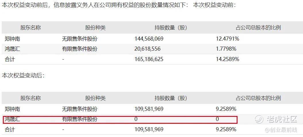 除此之外,郑钟南的一致行动人鸿晟汇所持公司股票在2020年2月解除限售,当年11月25日至12月1日之间,就将所持有的股票全部减持,直接清仓。
