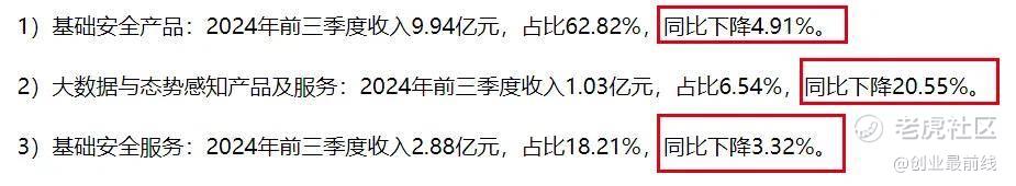 其中,2024年前三季度,贡献了超62%收入的基础安全产品实现收入9.94亿元,同比下降4.91%。