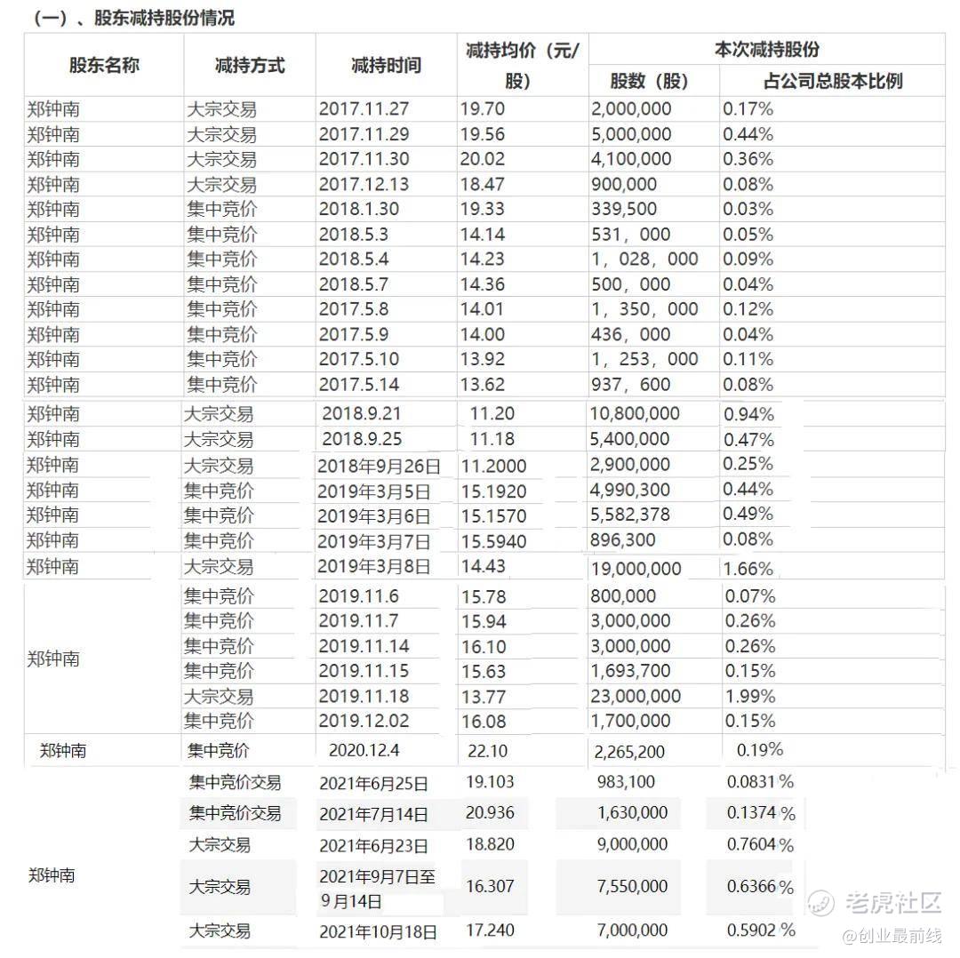 其实,郑钟南离开的脚步要更早一些,自2017年开始,郑钟南频频下场减持。据「界面新闻·创业最前线」不完全统计,2017年11月至2021年10月,郑钟南减持超30次,套现近20亿元。