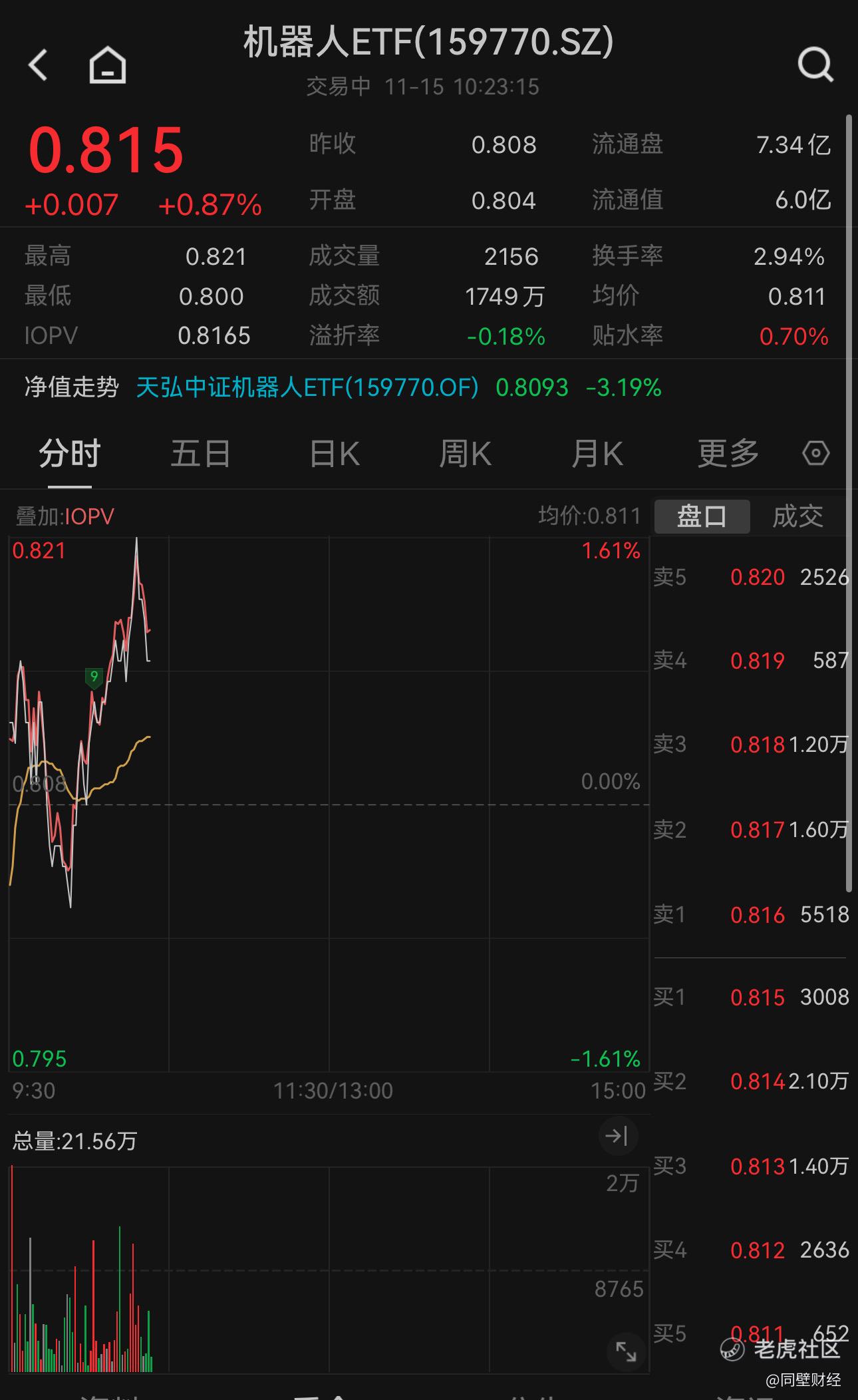盘面上,三大指数探底回升,沪指翻红,机器人概念快速上涨,截至10:23,机器人ETF(159770)现涨0.87%,权重股科大讯飞涨超5%,大华股份涨超4%,拓邦股份涨超3%,大族激光跟涨。