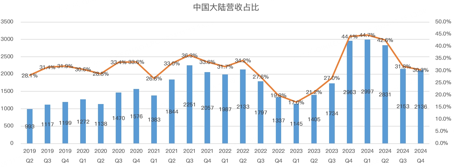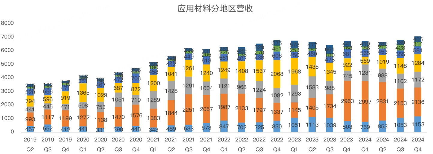 虽然中国客户减少订单,但受益于AI及半导体市场的复苏,应用材料在美国、韩国、台湾等地区的收入恢复增长。