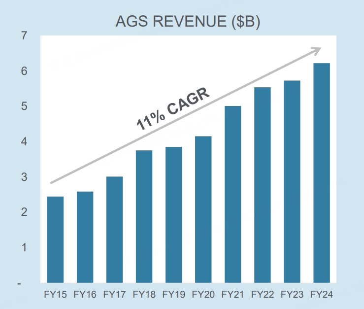 从历年收入上看,服务收入都保持了稳定增长,年复合增长率在11%: