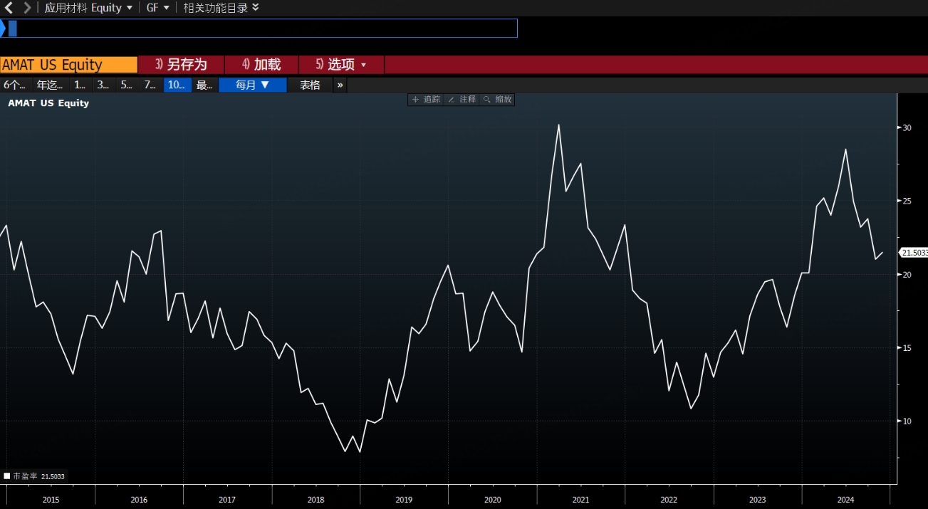 还有媒体表示,AI市场的火爆对应用材料的拉动作用不明显,无法抵消地缘政治或部分传统芯片市场需求低迷的影响,但其实,应用材料主要的矛盾来自估值偏高。