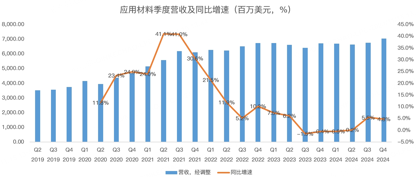 四季度,应用材料的收入达到70.5亿美元,同比增长4.8%,略超分析师预期的69.7亿: