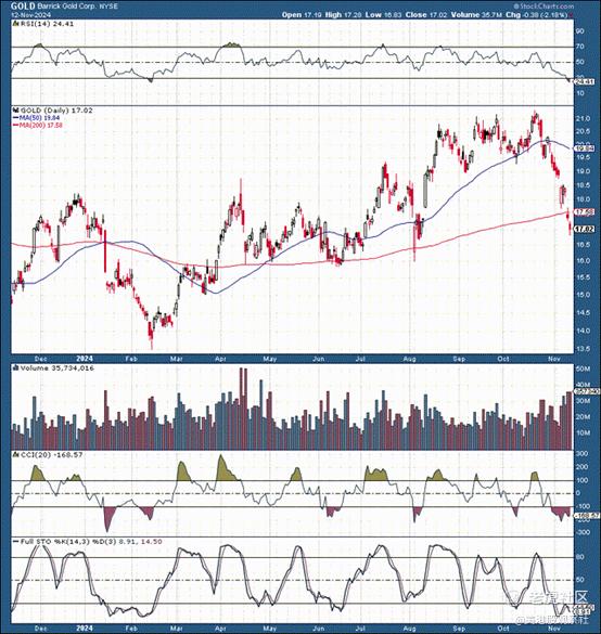 巴里克黄金的每股收益也略低于预期,为30美分,比市场普遍预期低2美分。然而,这支股票不应该像现在这样被拿出来扔进柴棚里。巴里克黄金价格从最近的高点下跌了约23%,去年仅上涨了约8%。该股目前处于严重超卖状态,相对强弱指数为24,CCI在-200左右,其他技术指标似乎都在喊“买入”。该指数也低于200日移动均线,很有可能很快出现大幅反弹。