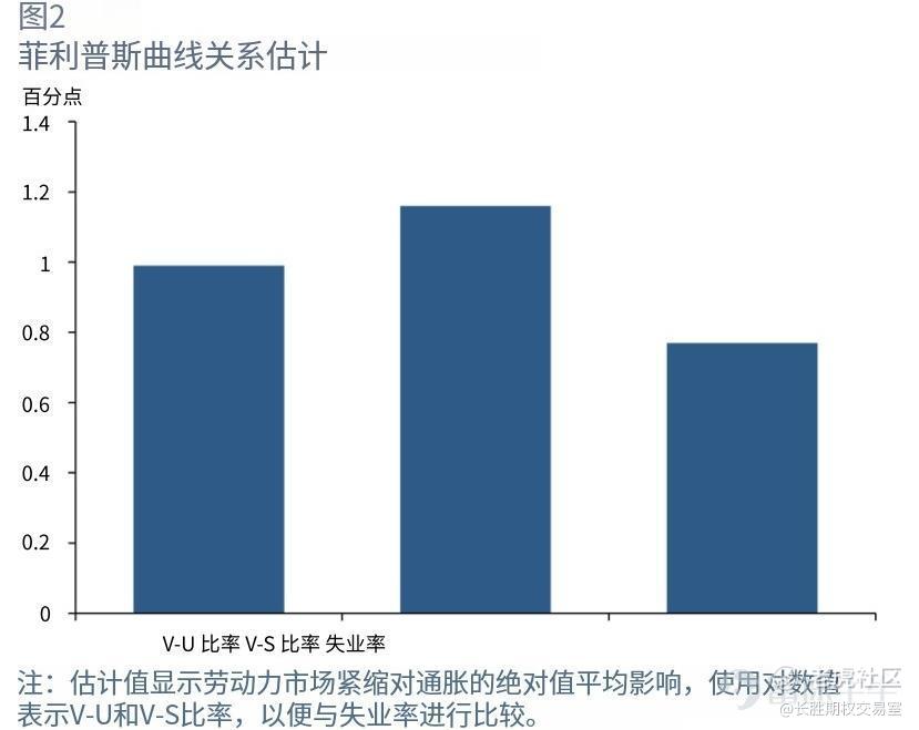 具体来说,V-U比率每增加一个标准差,就会使周期性核心通胀率上升1.0个百分点,而失业率下降同样幅度时,只会使通胀率上升0.8个百分点。V-S 比率的影响更大——一个标准差的增加会使通货膨胀率上升 1.2 个百分点。这些结果意味着 V-U 和 V-S 比率的变化导致通货膨胀的变动大于失业率的变动。