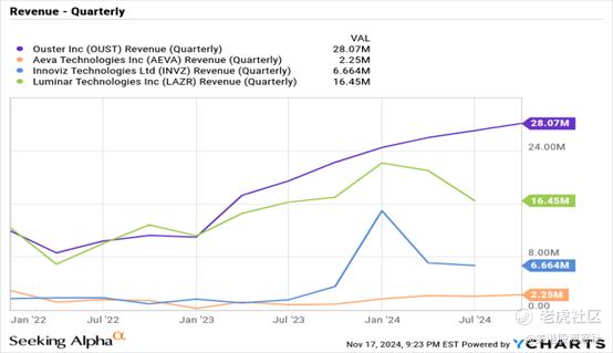 市场似乎没有认识到这种增长,今年股票并没有大幅上涨。Ouster报告称,上个季度销售额增长了超过26%,并指引2024年第四季度的创纪录收入为2900万至3100万美元。