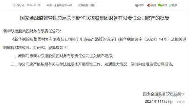 $新华联(000620)$ 【新华联集团财务公司获批进入破产程序】近日,金融监管总局发布的关于新华联控股集团财务有限责任公司破产的批复文件显示,原则同意该公司进入破产程序。批复文件要求,新华联集团财务公司应严格按照有关法律法规要求开展后续工作。如遇重大情况,及时向金融监管总局报告。