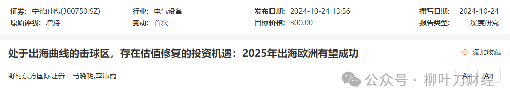 野村证券前阵子发布了一个宁德时代的研报:《处于出海曲线的击球区,存在估值修复的投资机遇:2025年出海欧洲有望成功》