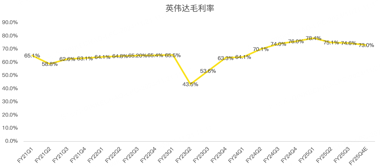 英伟达预计四季度的毛利率在73%左右,从趋势上看,已是连续3个季度下滑: