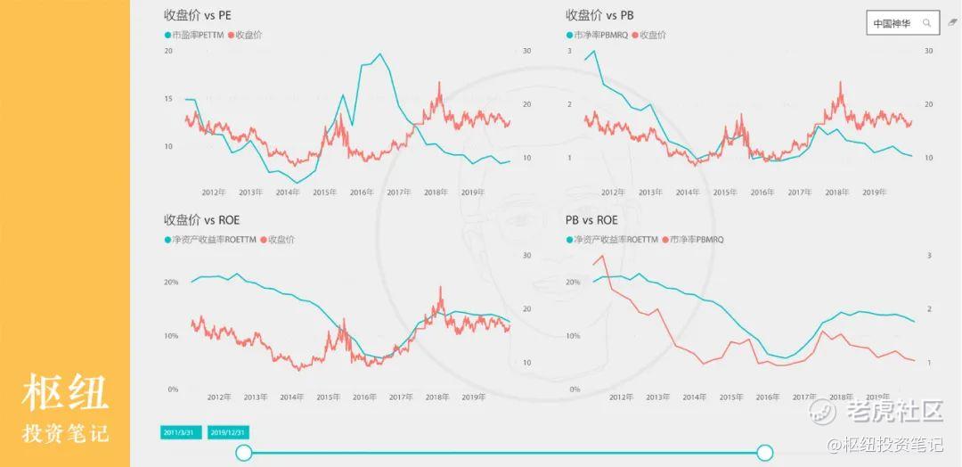PB与股价的走势最为接近,这也从另一方面佐证了“资产价格直接决定周期股的走势”的观点。因此,我周围有很多做周期股的投资者一般会采用“PB高抛低吸”策略来进行周期股的投资。