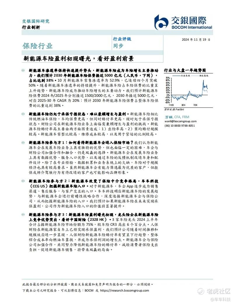 近日,交银国际发布《新能源车险盈利初现曙光,看好盈利前景》研究报告(以下简称《报告》)。