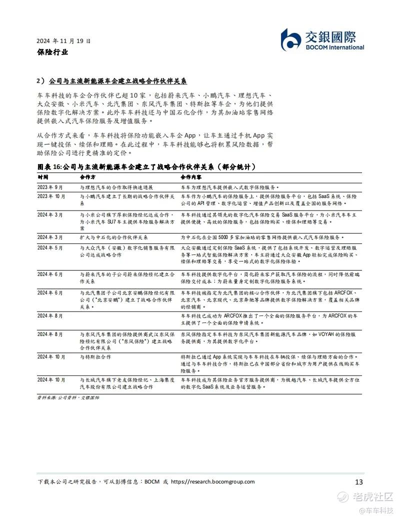 第二,新能源车改变了保险中介竞争格局,车车科技把握新能源车险入口。对于新能源车,车企App逐步成为销售渠道、售后服务,与客户交互的入口。车车科技顺应新能源车险的发展趋势,与新能源车企进行前瞻性战略合作,深度连接新能源车企与保险公司,从而把握新能源车险的入口。我们预计如果新能源车险在未来实现承保盈利,公司作为新能源车险入口的价值将显著提升。