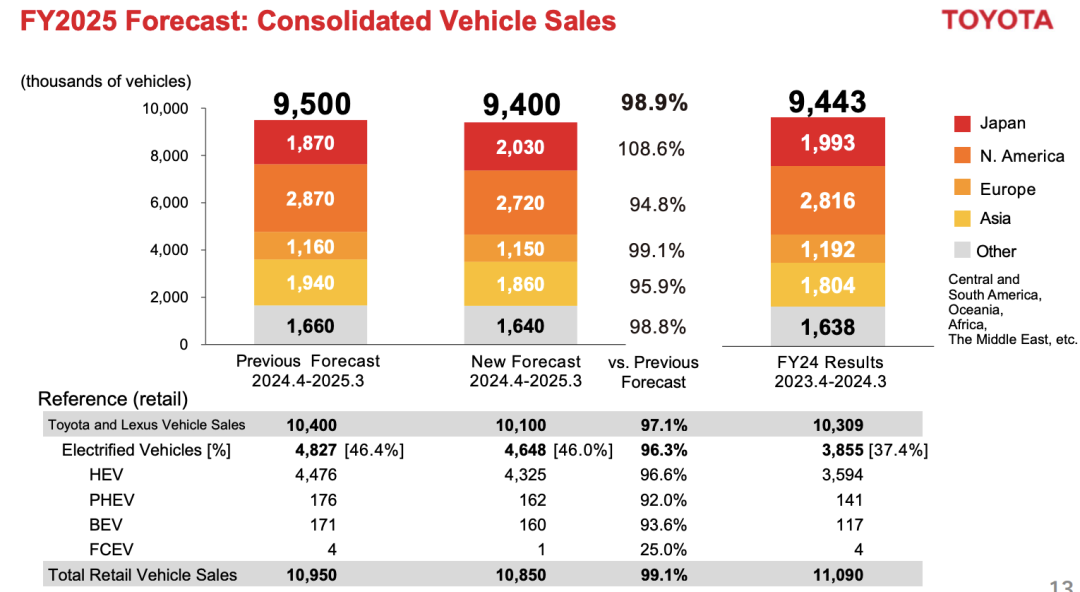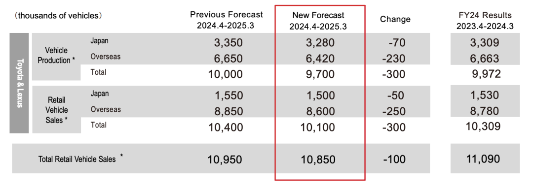 ◎ 丰田和雷克萨斯品牌联合销售量预计为 1010 万辆,此前预测为 1040 万辆。