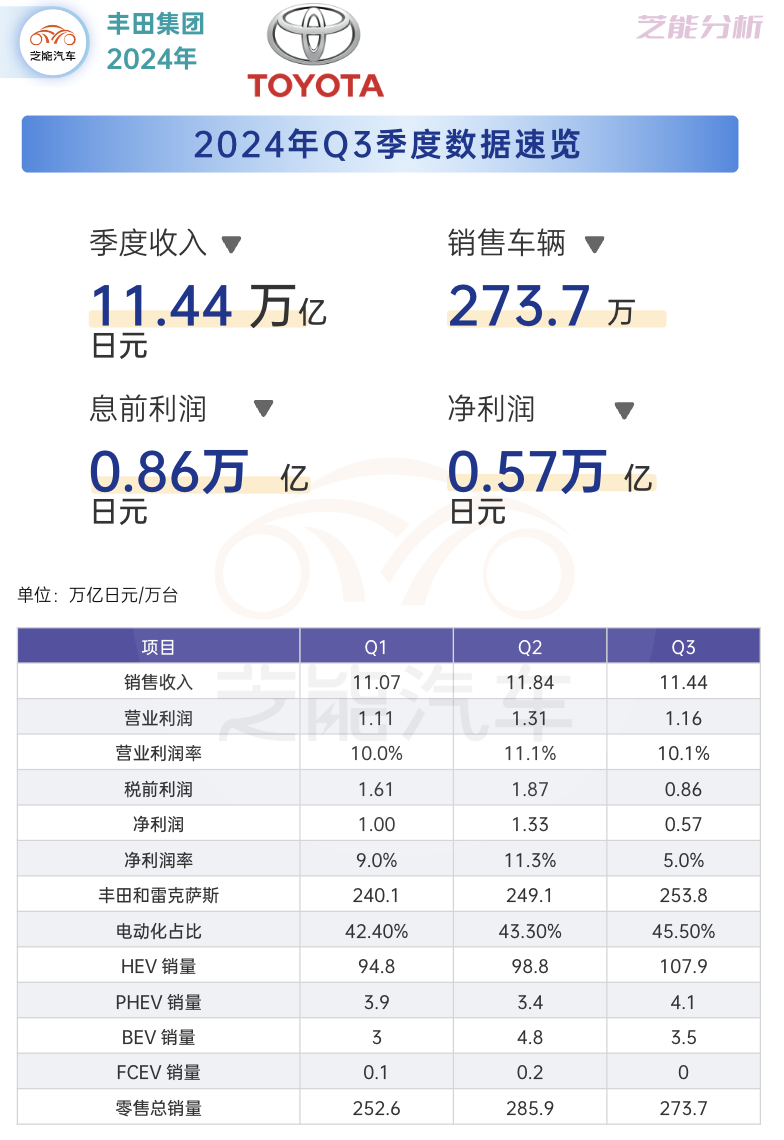 丰田2024年Q3财报:净利润“腰斩”的背后