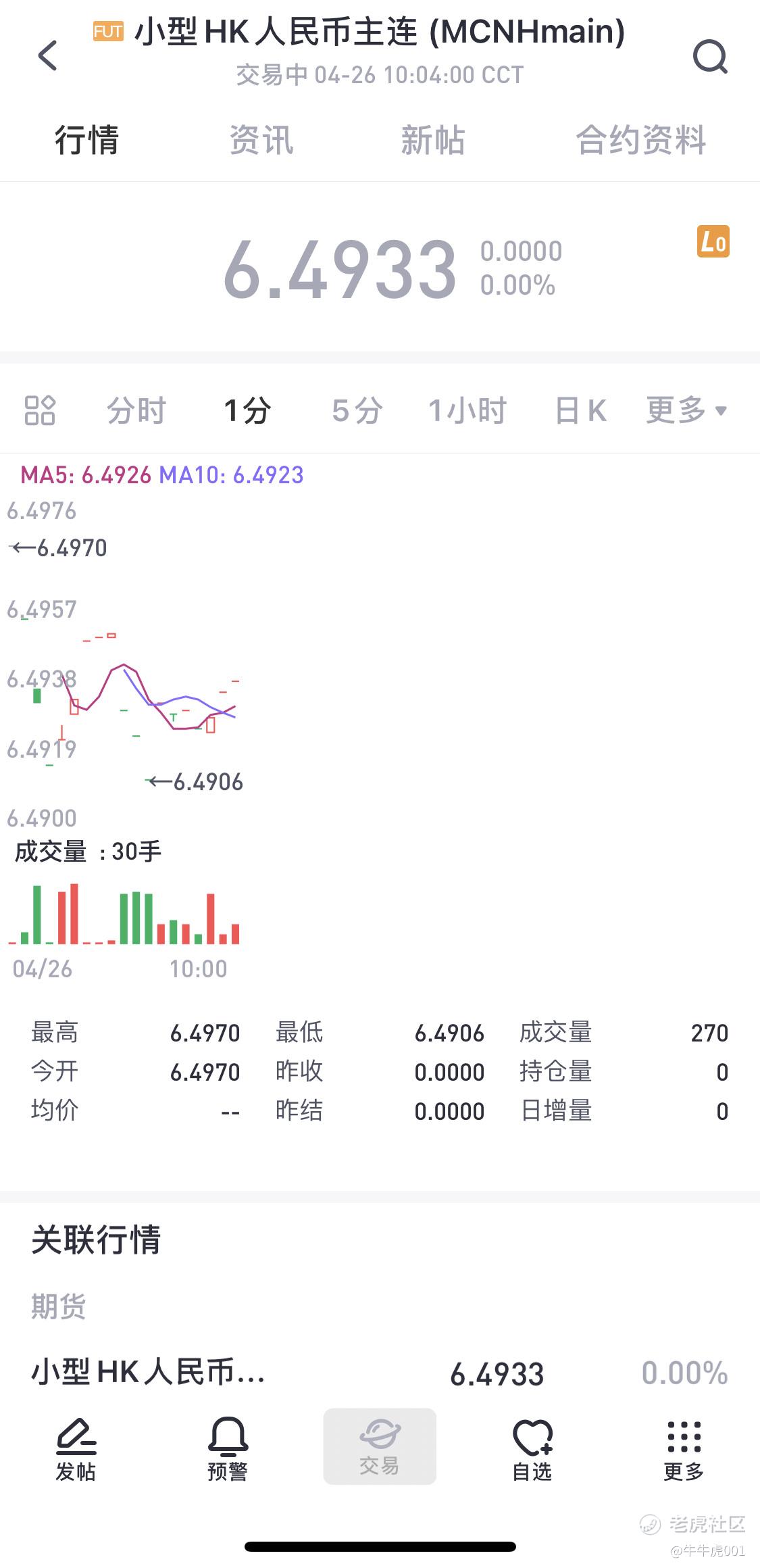 $小型HK人民币主连(MCNHmain)$ 港交所的人民币期货小型合约今天上线了,2万美元名义本金,保证金大约2000多人民币一手,对冲汇率波动更方便了~