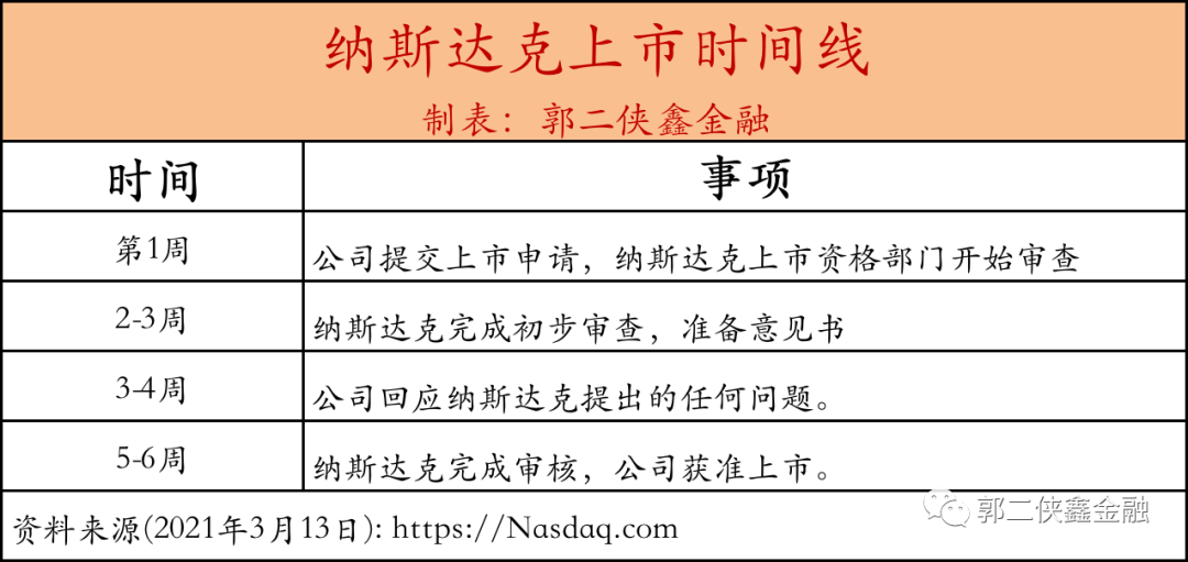 因此,顺利的话,通常5-6周即可完成纳斯达克上市过程。