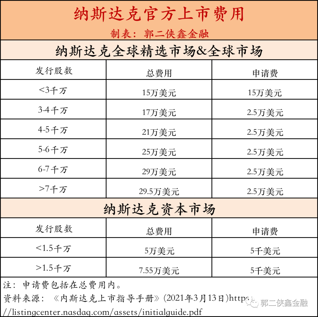可能有投资人关心,在纳斯达克上市需要花多少钱?