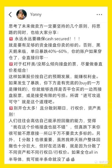 3️⃣ 其实周五的盘后收盘价它是完全站外我双卖区间内的,只是因为周四那天我没能承受住波动,提前止损平仓了…所以我又更新了期权卖方的原则(此前的原则见下图):