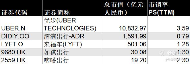 公司的可比公司包括滴滴、uber、lyft、如祺出行、嘀嗒出行等共享出行公司,它们的PS估值中位数为1.3倍,公司对应的估值为154.6亿元人民币,略低于B轮融资时的估值。不过,对比同样是港股上市的如祺出行、嘀嗒出行,曹操出行具有领先的市场份额,有可能获得更高的估值。