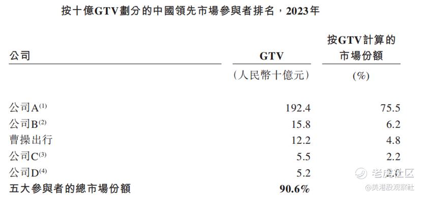 网约车市场竞争激烈,市场份额高度集中。以 2023 年 GTV 计算,行业前五大参与者占据 90.6% 市场份额,曹操出行市场份额 4.8%,位列前三。公司面临来自其他网约车平台的竞争,需不断创新提升竞争力,以应对市场份额争夺挑战。