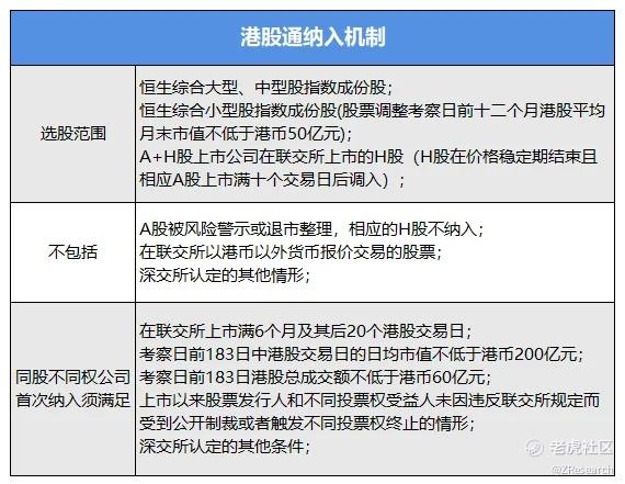 根据《深圳证券交易所深港通业务实施办法(2024年修订)》,港股通纳入标准如下表所示:
