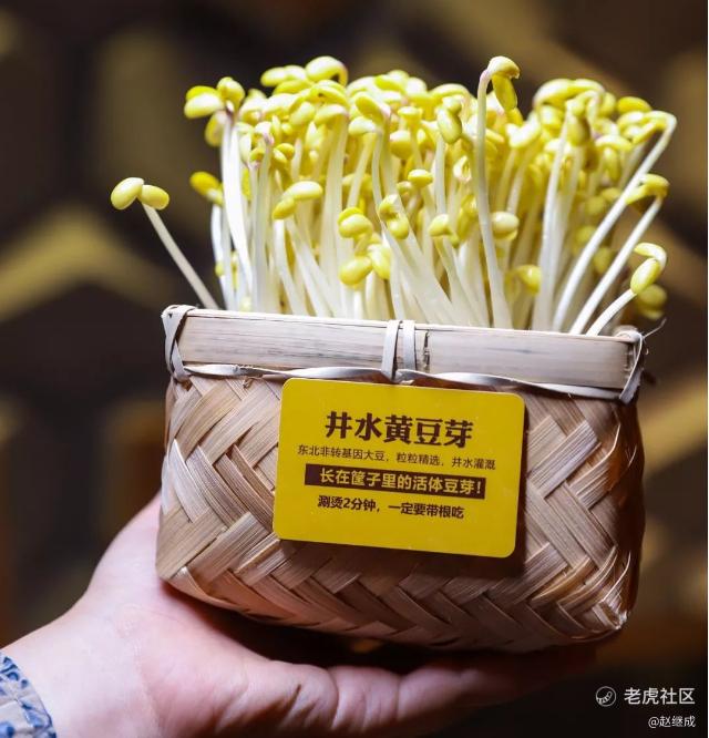 比如井水黄豆芽,市面上常见的白净无根须的“漂亮豆芽”,只有2-3天生长时间,在手指上绕一下,立刻就会断掉。而巴奴自然生长的井水黄豆芽,生长时间足足7天,现场展示时可以绕筷子两三圈而不折断。