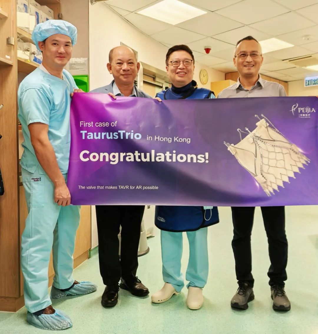 本次植入由香港嘉诺撒医院亚洲心脏科中心主任林逸贤教授(Yat-Yin Lam)在香港港安医院,联合麻醉超声多学科团队,使用TaurusTrio经导管主动脉瓣系统成功完成香港地区首例收费同情救治使用。
