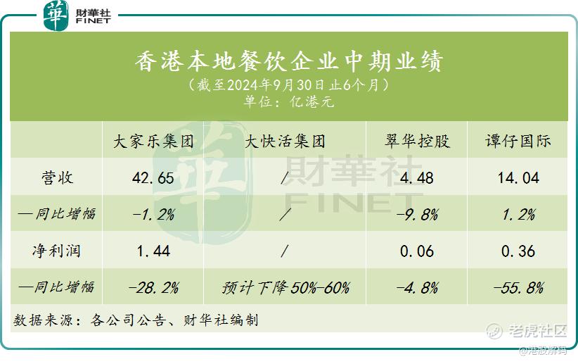 相比之下,规模较小的中式连锁餐饮企业 $翠华控股(01314)$ 显示出较强的抗跌能力,其营收和净利润分别同比下降9.8%和4.8%。