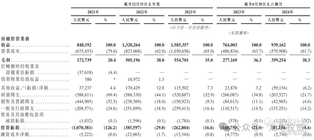 毛利:2021年毛利1.72亿人民币,2022年毛利5.05亿人民币,2023年毛利5.54亿人民币,截止2024年6月30日最近12个月毛利6.37亿人民币。