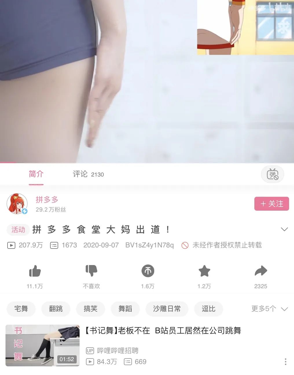 按照弹幕的指引,又搜了一下,发现中国平安、国家电网、甚至拼多多都加入了战场,其中,拼多多的视频尺度算是做的比较大的: