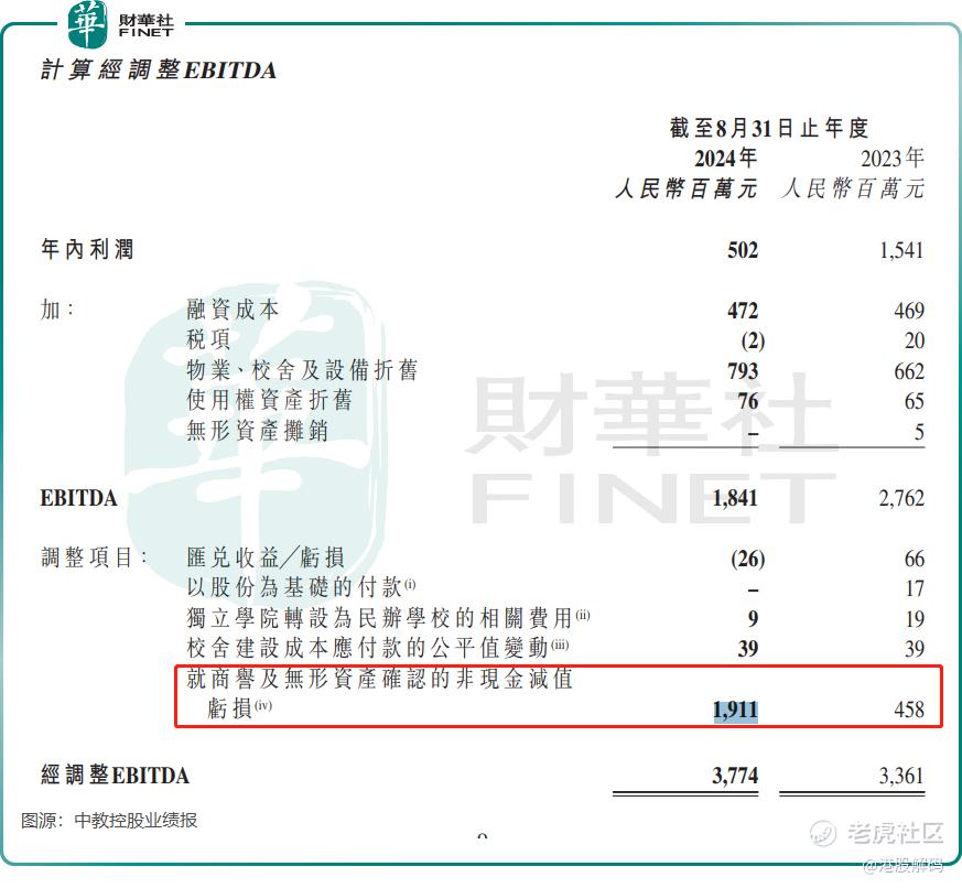 业绩出现大变脸,主要是由于中教控股计提了高达19.11亿元的商誉/无形资产减值,该笔减值源于对三所并购学校增长预期的下修。