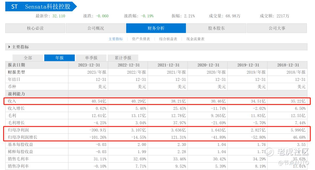 在营收和利润方面,2023年,森萨塔营收40.54亿美元,净利润亏损390.9万美元。