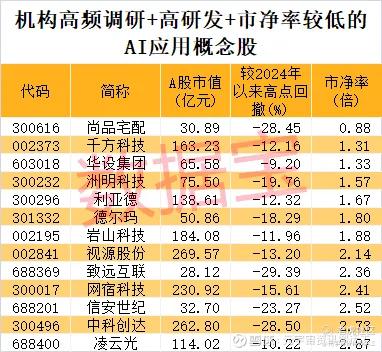 机构高频调研上市公司,投资者可以更详细了解上市公司经营状况以及项目进展等信息。据证券时报·数据宝统计,上述67只高研发投入的AI应用概念股中,今年以来机构调研5次以上的有34只,其中4股获机构调研20次以上,分别是中控技术、远光软件、利亚德、汤姆猫。