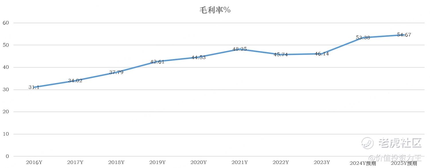 分析师预期到2025年,AMD的毛利率能达到55%,相比AI爆发前45%左右的水平明显提升: