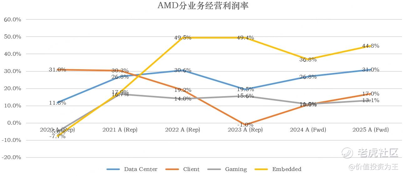 相比传统的CPU和游戏业务,数据中心的盈利能力更强,预计经营利润率在30%左右,远高于17%的PC和13%的游戏业务: