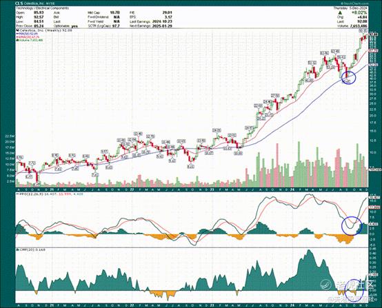 周线图上的PPO和CMF看起来比日线图好多了。这说明看到的任何卖出都是长期持有者的买入机会。这支股票极度超买,但这就是伟大公司会发生的事情。超买状况是一个非常看涨的信号,只是在任何卖出之后,上升趋势恢复只是时间问题。
