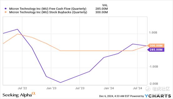 许多半导体公司在市场条件繁荣的情况下向股东返还大量现金。英伟达作为一个例子,宣布了500亿美元的股票回购,但即使是像美光这样的较小公司也在向投资者返还大量现金。美光在2021财年到2024财年之间完成了44亿美元的股票回购(6300万股),如果HBM3E的市场条件保持看涨,这家存储器制造商可能会在2025财年回购更多股票。在最近一个季度,美光以3亿美元的总对价回购了约320万股股票。