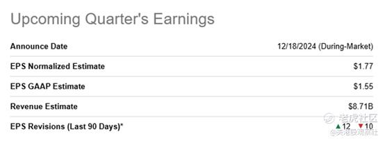美光可能会有一张强劲的盈利成绩单,主要是由于对公司下一代高带宽内存解决方案的需求增长。在过去的九十天里,分析师已经12次提高了他们的每股收益预测,相比之下有10次每股收益向下修正。