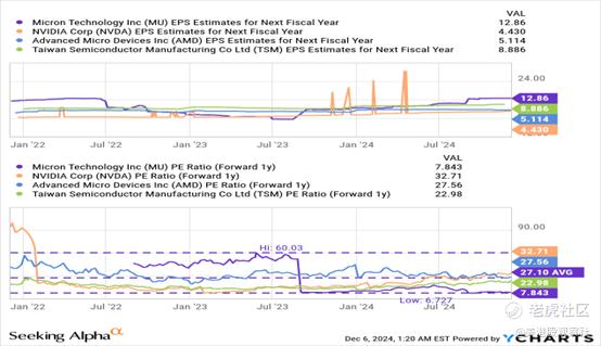 美光的最大风险与公司在HBM3E出货量增长上失望有关,这对于半导体公司的股价重新估值至关重要。此外,对内存产品的支出经常被证明是波动的,导致美光的收益(预期)大幅波动,这使得每股收益预测更具挑战性。