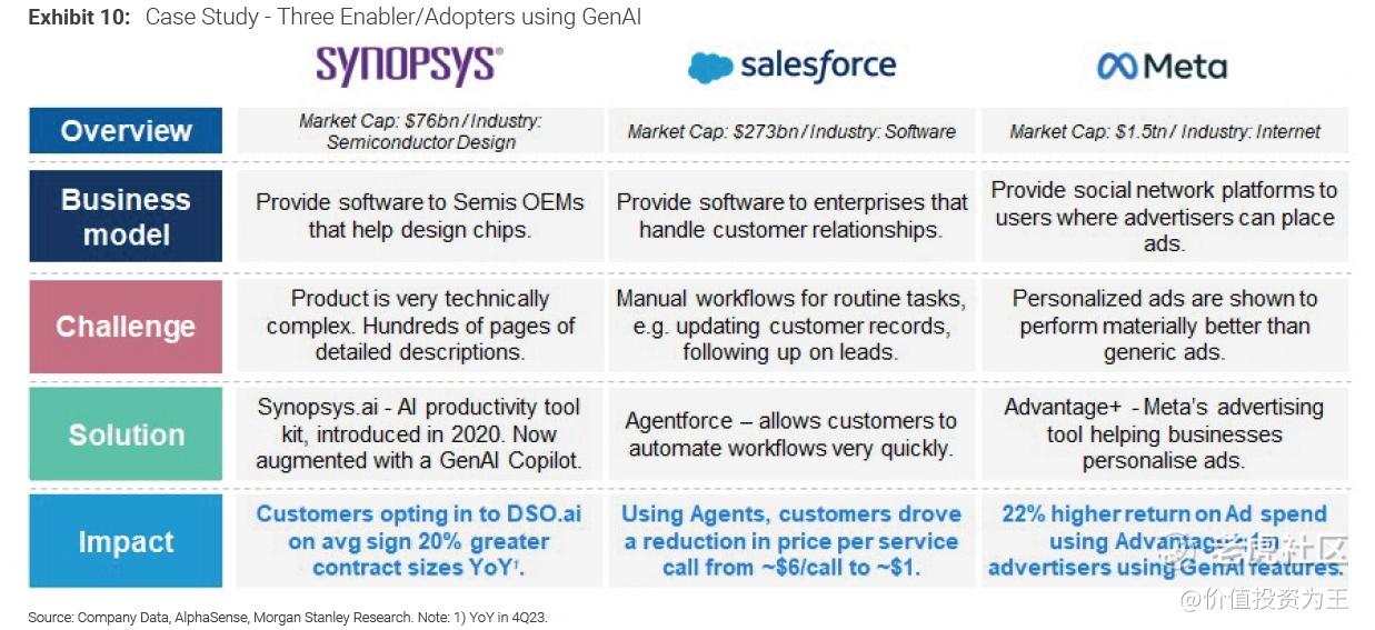 其中,新思科技在2020年推出AI生产力工具包,如今增加了生成式AI助理,对新思科技AI服务的使用增加帮助其在续签时将部分合同的价值提高了20%。