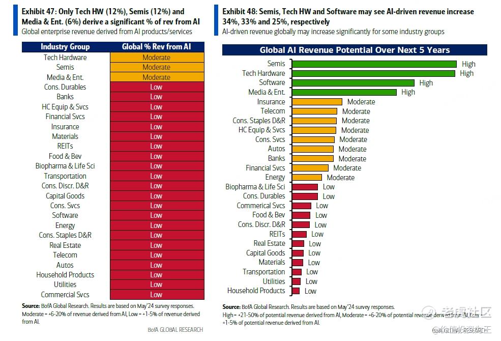 美国银行的研报和摩根士丹利有异曲同工之妙,不同的是,美银调研的对象是130名分析师。更关键的是,美国银行的研报给未来指明了方向,即英伟达之后,哪些行业有望爆发?