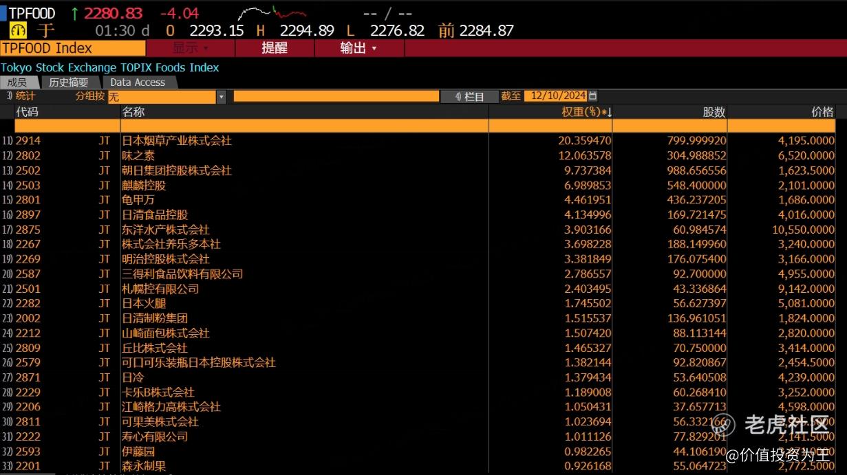 东证食品指数包括一众知名消费品公司,颇具参考意义:
