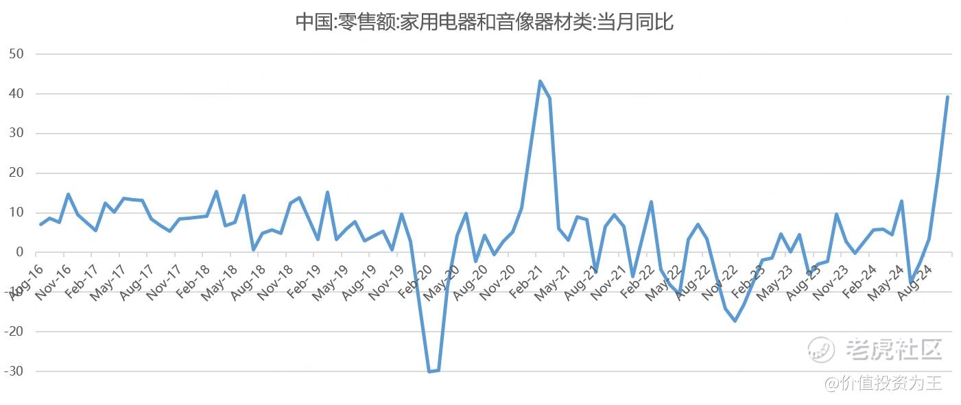 从国内来看,自今年8月以后,各地出台了家电以旧换新的刺激政策,从零售额来看,家电的增速有明显回升:
