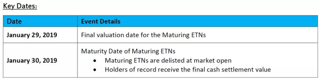 通告显示1月29日ETN到期,在1月30日开盘就会摘牌。同时VXX的持有者会收到结算后的现金。